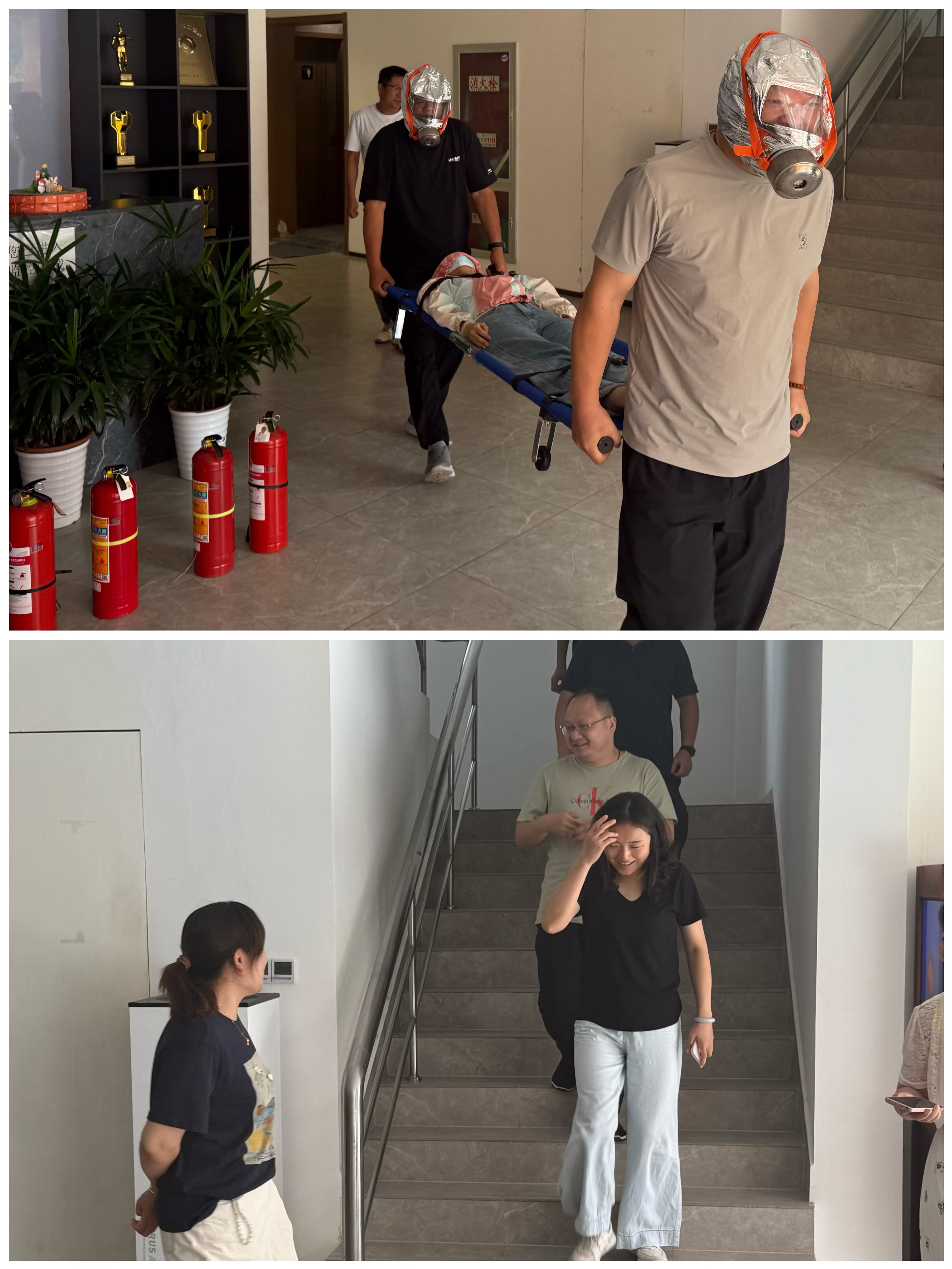 1. 應急疏散演練隨著警報聲響起,全體員工立即進入緊急狀態(tài)。在疏散引導員的指揮下,大家彎腰低姿、捂住口鼻,按照預定路線快速有序撤離至安全區(qū)域。